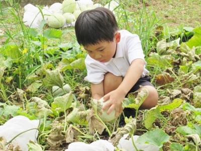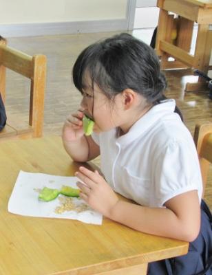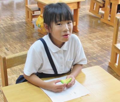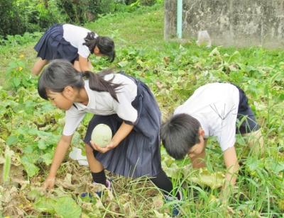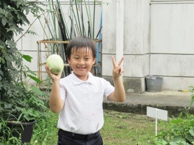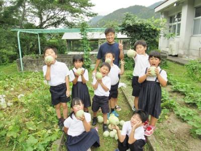 2年生が、育てていたメロンの収穫をしました。毎日水やりをしたり、熱心に観察をしたりしていた2年生! あま~いメロンを、みんなでおいしくいただきました。