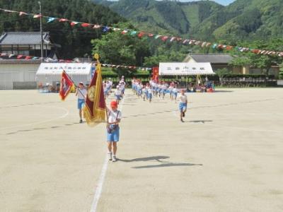 子どもたちは、元気いっぱい腕を振って入場行進をしました。