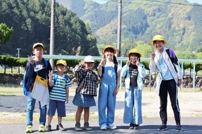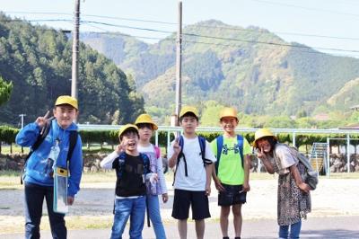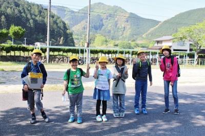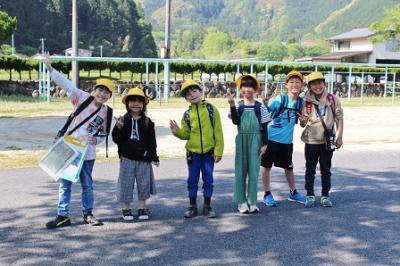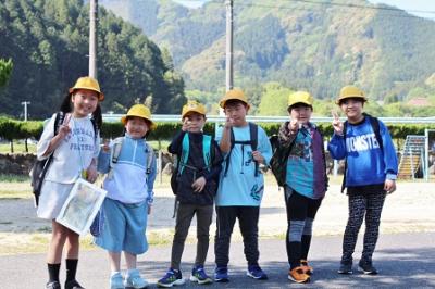 先週、1~5年生が遠足に行きました。5班に分かれて、校区内のチェックポイントをスタンプラリーをしながら歩きました。