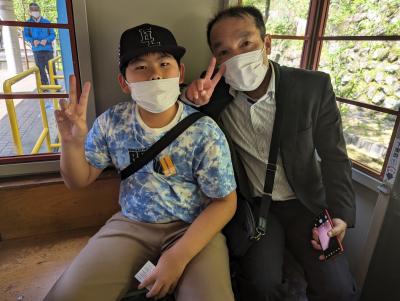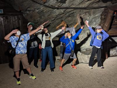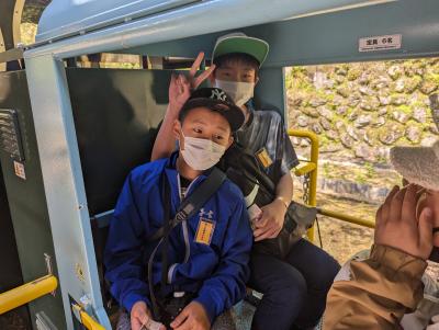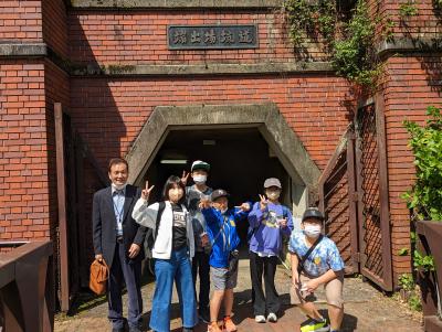 修学旅行15「マイントピア別子」 2023年4月28日 11時00分 今日最初の見学地、マイントピア別子に行きました。日本三大銅山だった別子銅山内を、トロッコ列車に乗ったり、坑道内を見学したりしました。