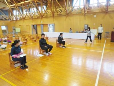 入学式リハーサル 2023年4月9日 08時00分 雨天のため、7(金)の入学式準備・練習に子どもたちが登校できなかったので、入学式のリハーサルを教職員で行いました。ほのぼのとした雰囲気の中、入学式全体の児童・教職員の動きなどを確認しました。