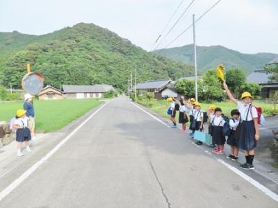 登校の様子 2023年6月27日 07時03分 いつも子どもたちの登下校を見守ってくださっている、三島っ子見守り隊のみなさん、宇和島警察署三島駐在所のおまわりさん、そして、保護者・地域のみなさん、どうもありがとうございます。