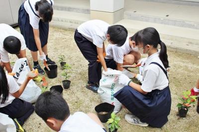 2023年6月28日 11時45分日吉農林公社の方を講師にお招きし、5・6年生が森林教室を行いました。木の育つ様子や手入れの仕方、そして、森林の働きなどについて詳しく教えていただきました。また、一昨年植えて育ったどんぐりの木の植え替えをしました。どんぐりの木が大きく育ってくれるといいですね。