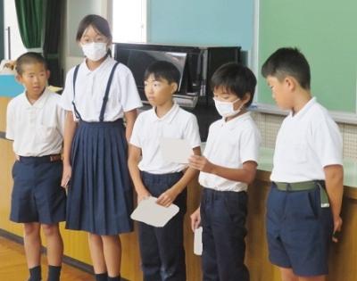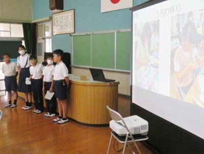 5年生の発表「大洲青少年交流の家利用活動」 2023年7月11日 10時22分 5年生が、大洲青少年交流の家利用活動での思い出を、スライドにまとめて発表しました。ウォークラリー・キャンドルサービス・スポーツクライミングなど、楽しかった2日間の様子を分かりやすく発表しました。