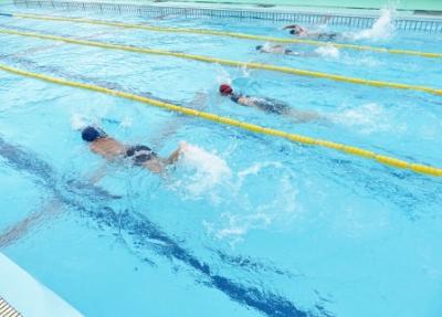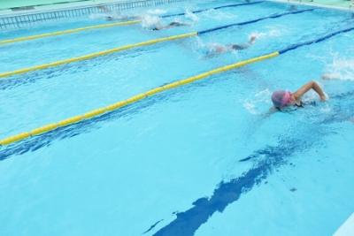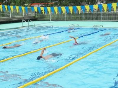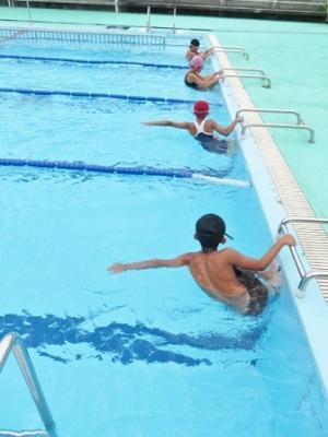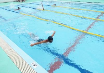 放課後の水泳練習では、自己記録の更新を目指して懸命に泳いでいる子どもたちの姿が見られます。がんばれ、三島っ子!