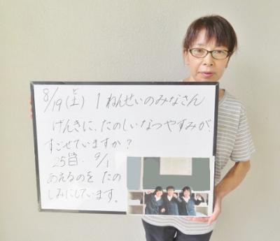 夏休みも残すところ13日間となりました。そこで、先生方から「三島っ子へのメッセージ」と題して、夏休み中の三島っ子のみなさんにメッセージを送りたいと思います。