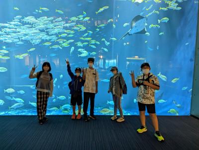 四国水族館内を見学しました。イルカのショーでは、「すご〜い!」「ジャンプが高いね!」といった、子どもたちの感想が聞かれました。